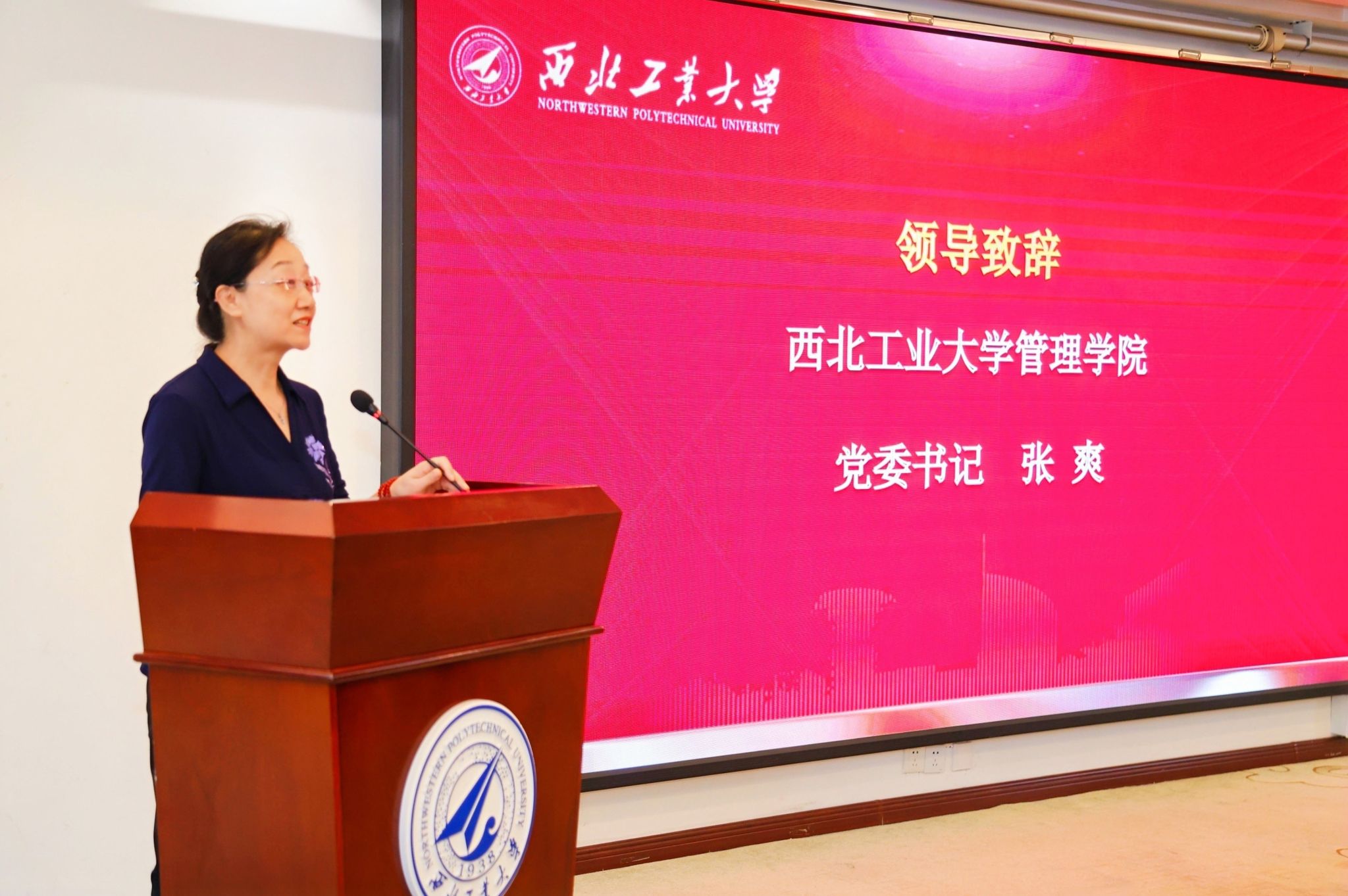张爽书记致辞,代表学院向本次圆满完成学业的同学们表示诚挚的祝贺,对陕西省工信厅长期以来给予西工大acg漫画