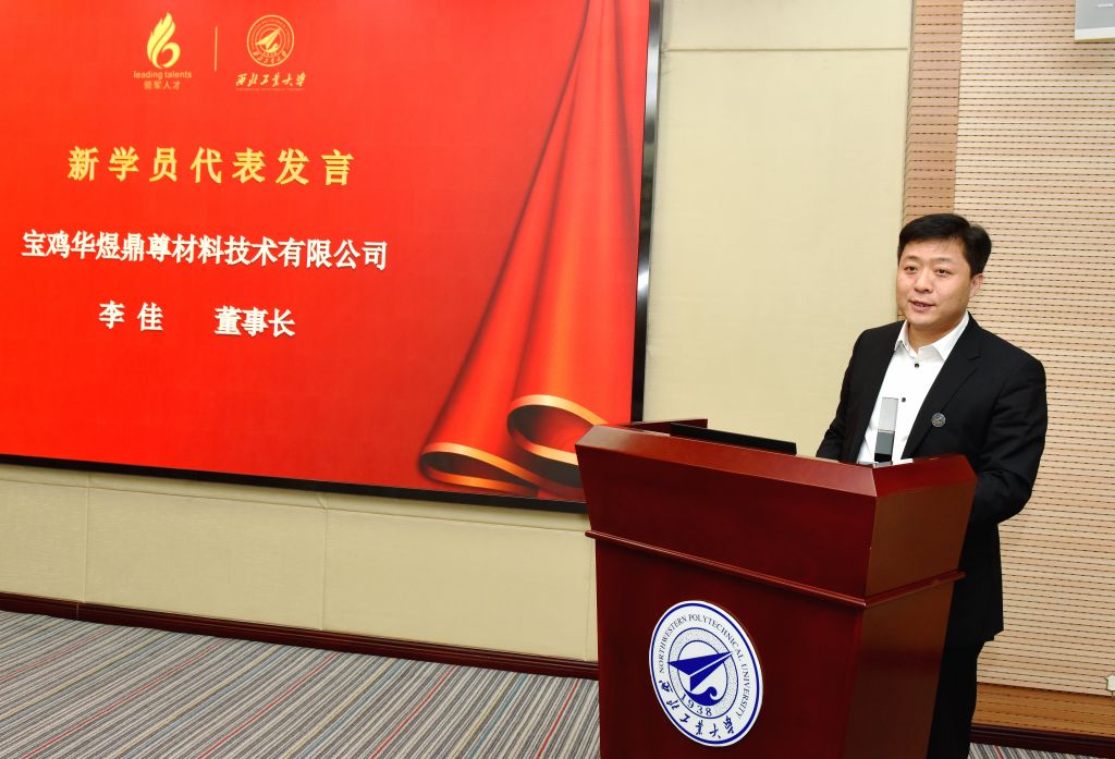 本期学员代表宝鸡华煜鼎尊材料技术有限公司董事长李佳表示,充分认识到领军人才的意义,怀着强烈的社会责任感,认真学习,致知于行;遵守纪律,服从管理;精诚团结,增进友谊;丰富活动,展现风采。“希望在未来的日子里,我们共同成长,变得更加健硕;表里相依,携手同行,在实现‘领军人才实业强国梦’的进程中为‘中国梦’贡献我们一份力量。”