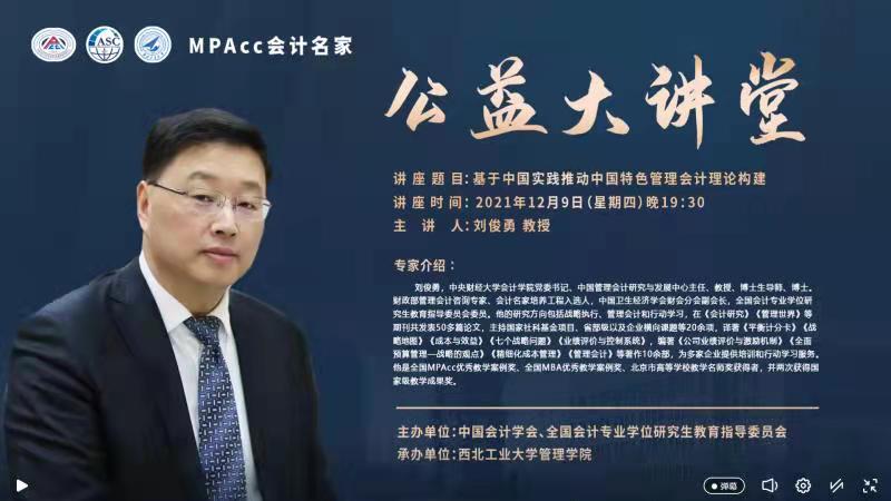 承办的“MPAcc会计名家公益大讲堂”通过线上直播方式顺利举行。本次讲座特邀全国会计专业学位研究生教育指导委员会委员、MPAcc会计名家、中央财经大学会计学院博士生导师刘俊勇教授主讲。讲座由acg漫画