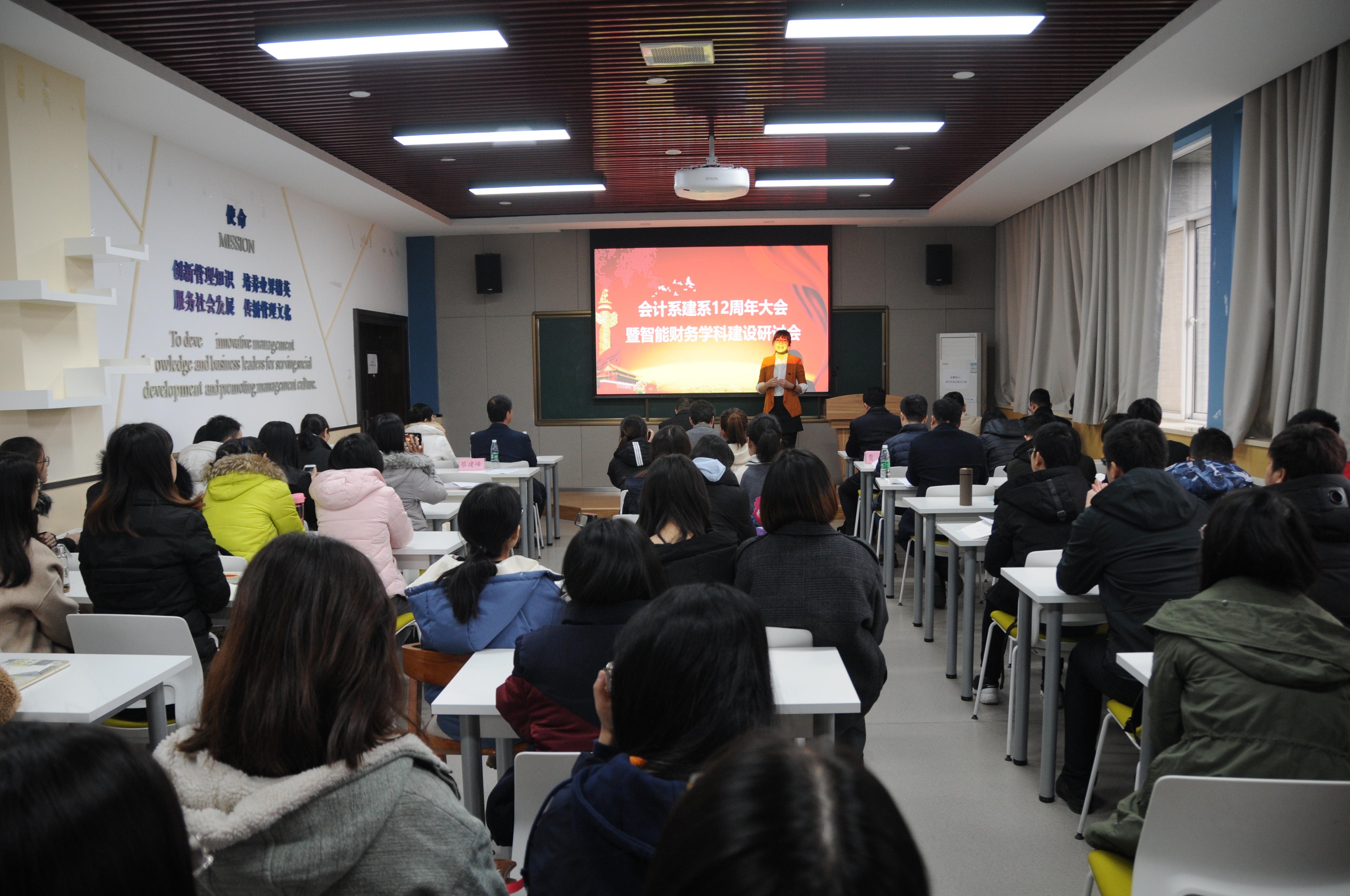 214报告厅隆重举行了建系12周年大会暨智能财务学科建设研讨会,院长车阿大、党委书记李小聪等院领导到会祝贺,五十余名师生参加了大会。会议特邀西安交通大学acg漫画