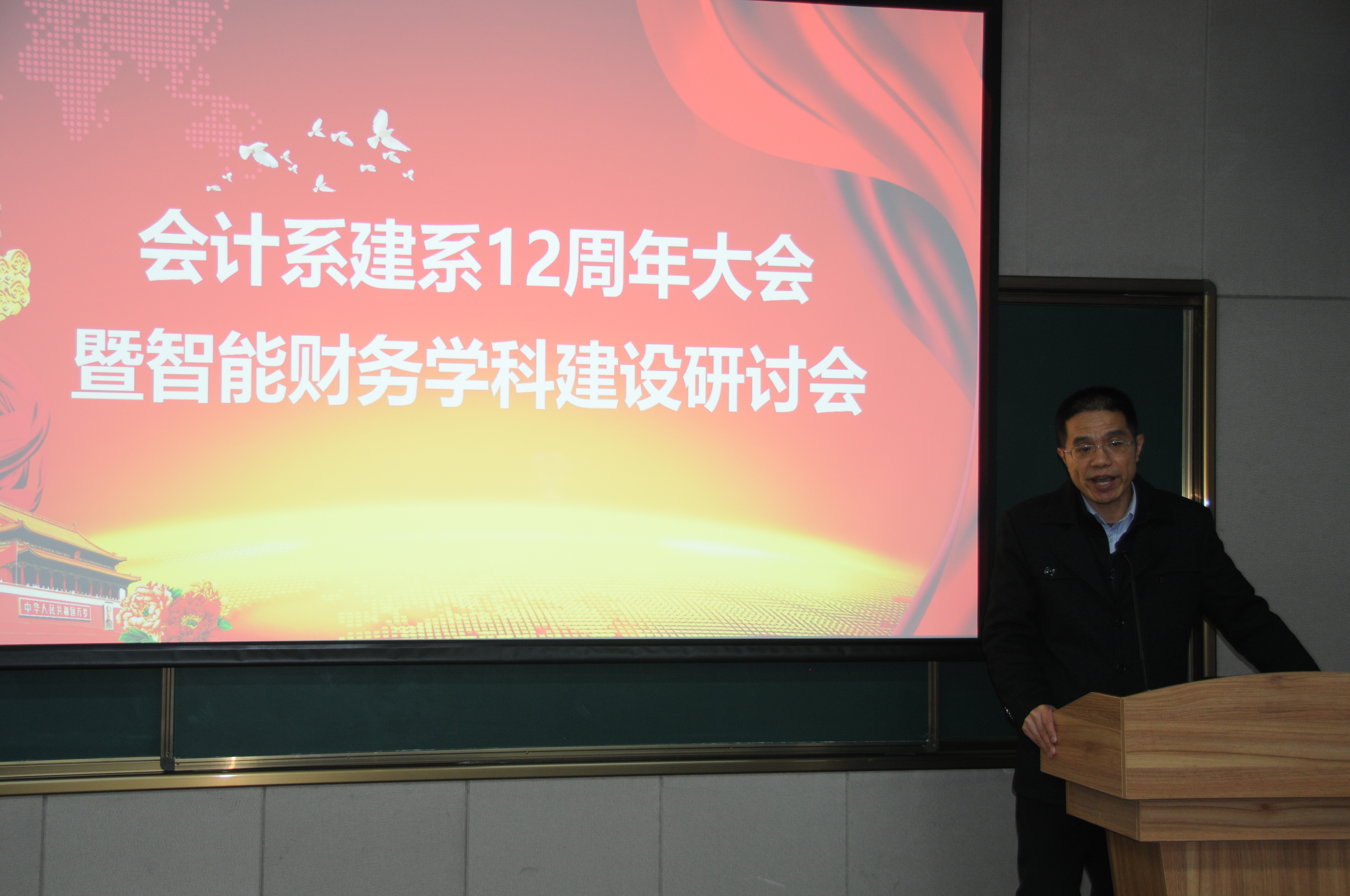 院长车阿大教授进行了致辞,对会计系建系以来的发展及取得的成果进行了充分肯定,对会计系的未来发展提出了更高期望。