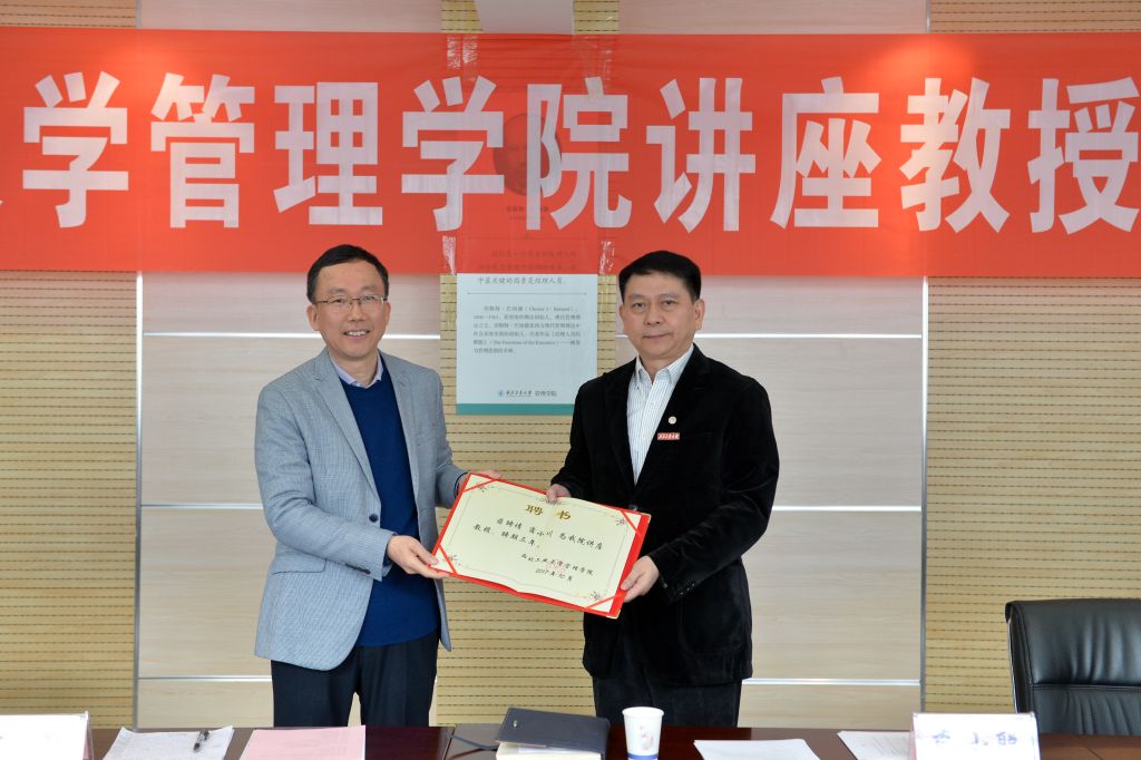 从2017年初开始,在校友企业家及各行业知名管理专家中开展讲座教授遴选工作。本次聘任的企业家讲座教授经过了学院学术委员会和党政联席会的研究,得到了受聘企业家的支持。