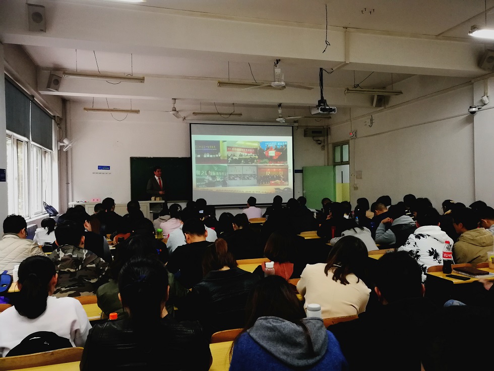 校友李强首先以诗仙李白的诗歌“五陵年少金市东,银鞍白马度春风 落花踏尽游何处,笑入胡姬酒肆中”开场,讲述了大唐西市的历史渊源,回顾了大唐西市集团作为陕西民营文化企业的代表如何顺应国家经济发展大战略,从小做大做强的发展历程。然后,李总结合自己的工作经历,与同学们一起分享了该集团在国家“一带一路”的发展思路和实践方案,系统、生动、形象的讲述了大唐西市历史文化、大唐西市集团的产业结构、经营发展模式、经营策略和文化理念,剖析了大唐西市“丝绸之路”与国家“一带一路”的关系。使同学们对文化企业的管理模式,运作流程,发展战略有了直观,深入的了解。