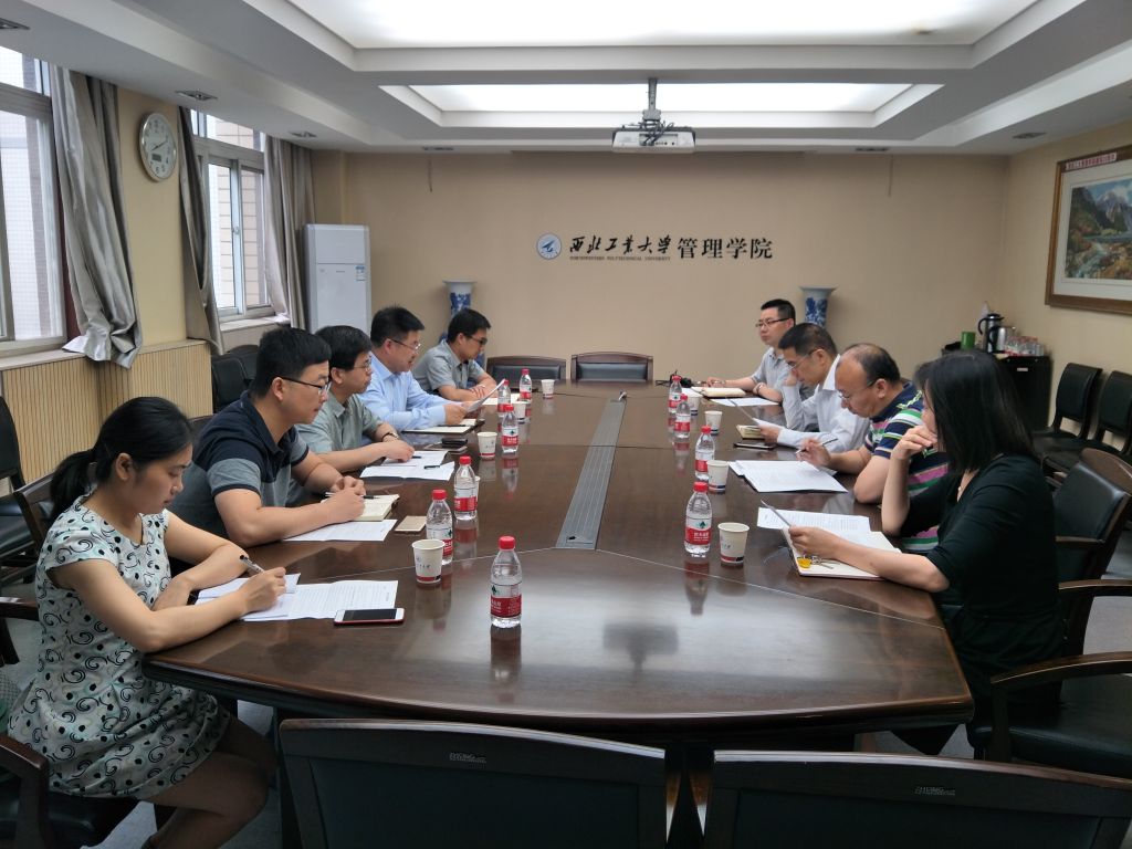 郭云涛主任就专业学位研究生复试环节中引入企业专家以及MBA面临的挑战---国际权威性认证进行了简要汇报。孙若妮副主任就专业学位培养方案中的课程设置、实践环节以及校外导师遴选做了汇报。肖平主任就EMBA招生、培养情况进行了简要汇报。