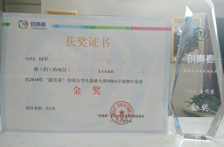 MBA学员向芳芸、黄卫宏、张晓宇、马正、郭文浩组成的创业团队作品“瓜大大数据:遥感大数据产业的运用与服务”经过商业计划书评审、现场答辩、集中评议等环节获得全国金奖,acg漫画