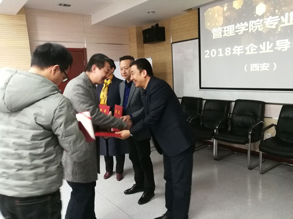 李小聪书记代表学院为第三批西安地区受聘企业导师颁发证书,并向他们表示祝贺。
