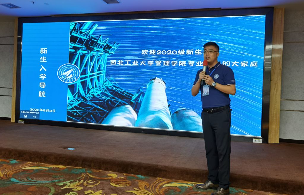 专业学位大家庭表示欢迎。李老师向全体新生详细介绍了学校和学院的发展历程与基本概况,重点讲解了新生迎新系统的使用、综合实践课程的设置以及各类学生赛事组织情况,为新生们描绘了丰富的第二课堂。