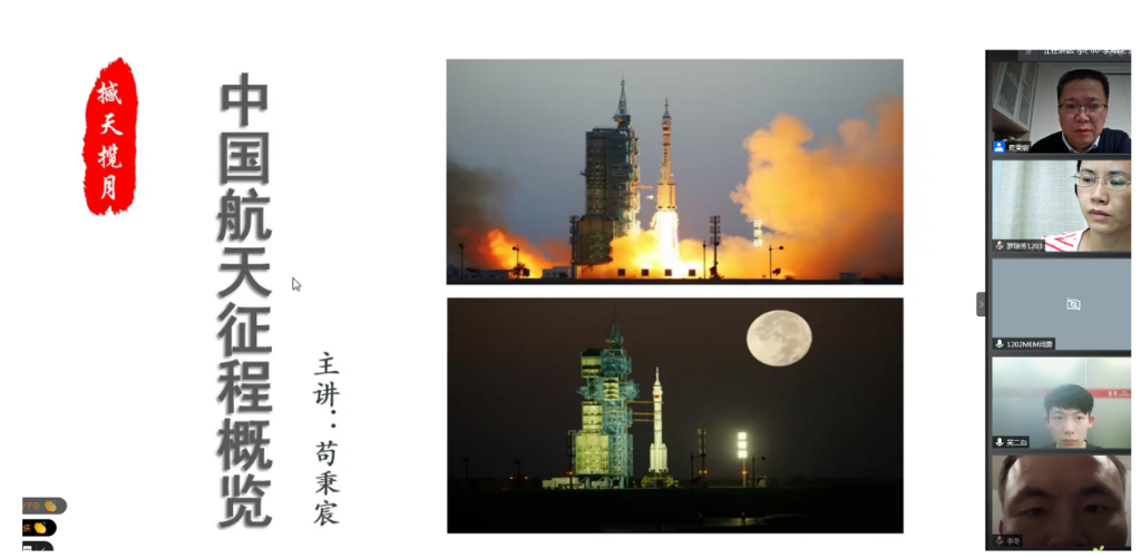 专业学位研究生做了《撼天揽月——中国航天征程概览》专题讲座。讲座由MBA/MEM教育中心李怡老师主持,百余名学生通过腾讯会议在线聆听了讲座。