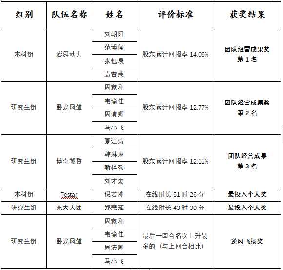 “尖烽时刻”商业模拟校园赛获奖名单