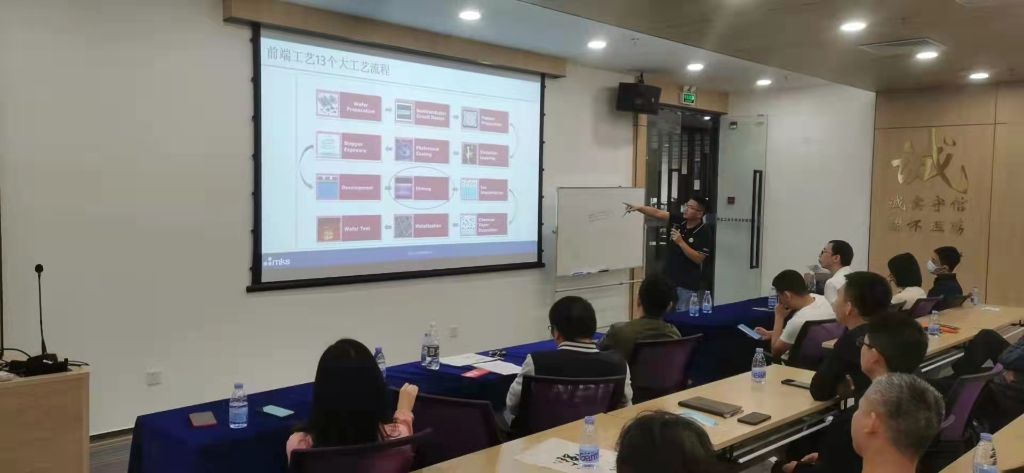 李兴刚作为万机仪器(中国)有限公司质量主管,分享主题为《芯片制造设备》。他首先介绍了芯片制造过程中使用到的部分设备,如功率发生器,匹配器;带大家一起回顾了半导体芯片制造大流程,从沙子到硅片,再到芯片的整个工艺流程,让同学们感受芯片制造工艺的复杂性。 着重分享从硅片到芯片前段工艺13个大工艺流程中的蚀刻部分,分析蚀刻工艺的设备功率发生器、匹配器及其构成和工作原理,让同学们对芯片的形成和构造有了新的认识。