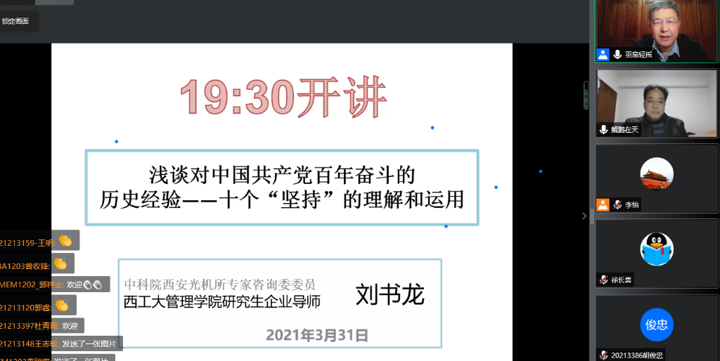 企业导师刘书龙为专业学位研究生作《浅谈对中国共产党百年奋斗的历史经验——十个“坚持”的理解和运用》云上讲座,线上近400名学生参加,讲座由acg漫画