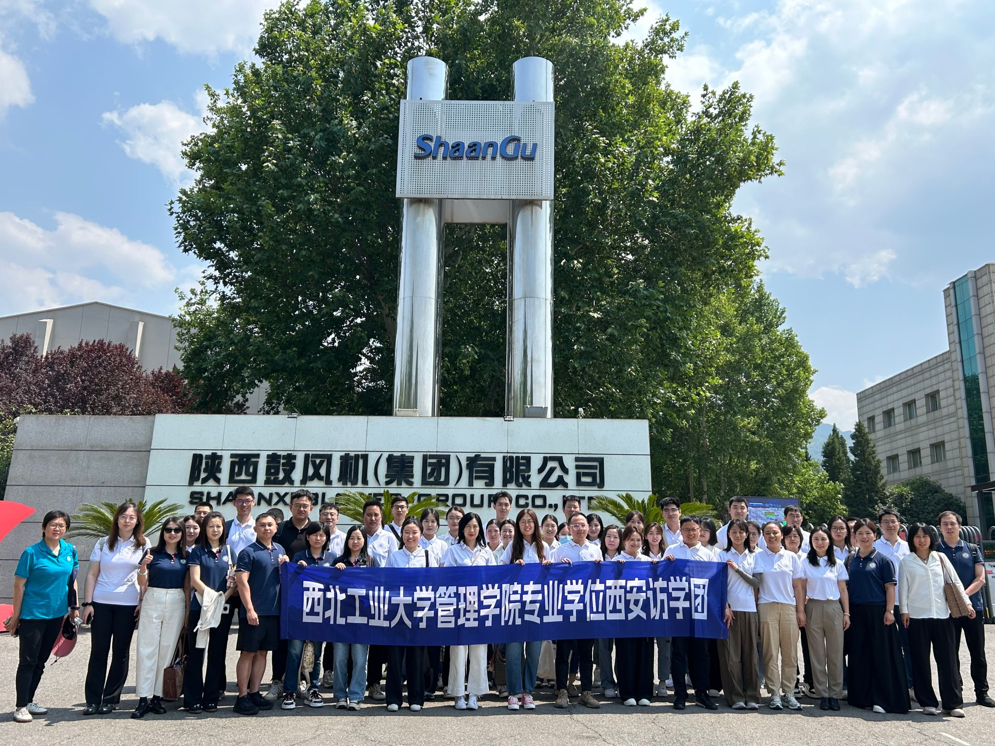 28日下午,同学们走进陕鼓集团临潼生产区,先后参观陕鼓友谊林、能源互联岛全球运营中心、总装车间及文化长廊,聆听毛希勇总监讲解陕鼓的转型发展之路,了解陕鼓智慧绿色分布式能源系统解决方案及其应用,深刻体会陕鼓转型升级中的奋斗与创新。