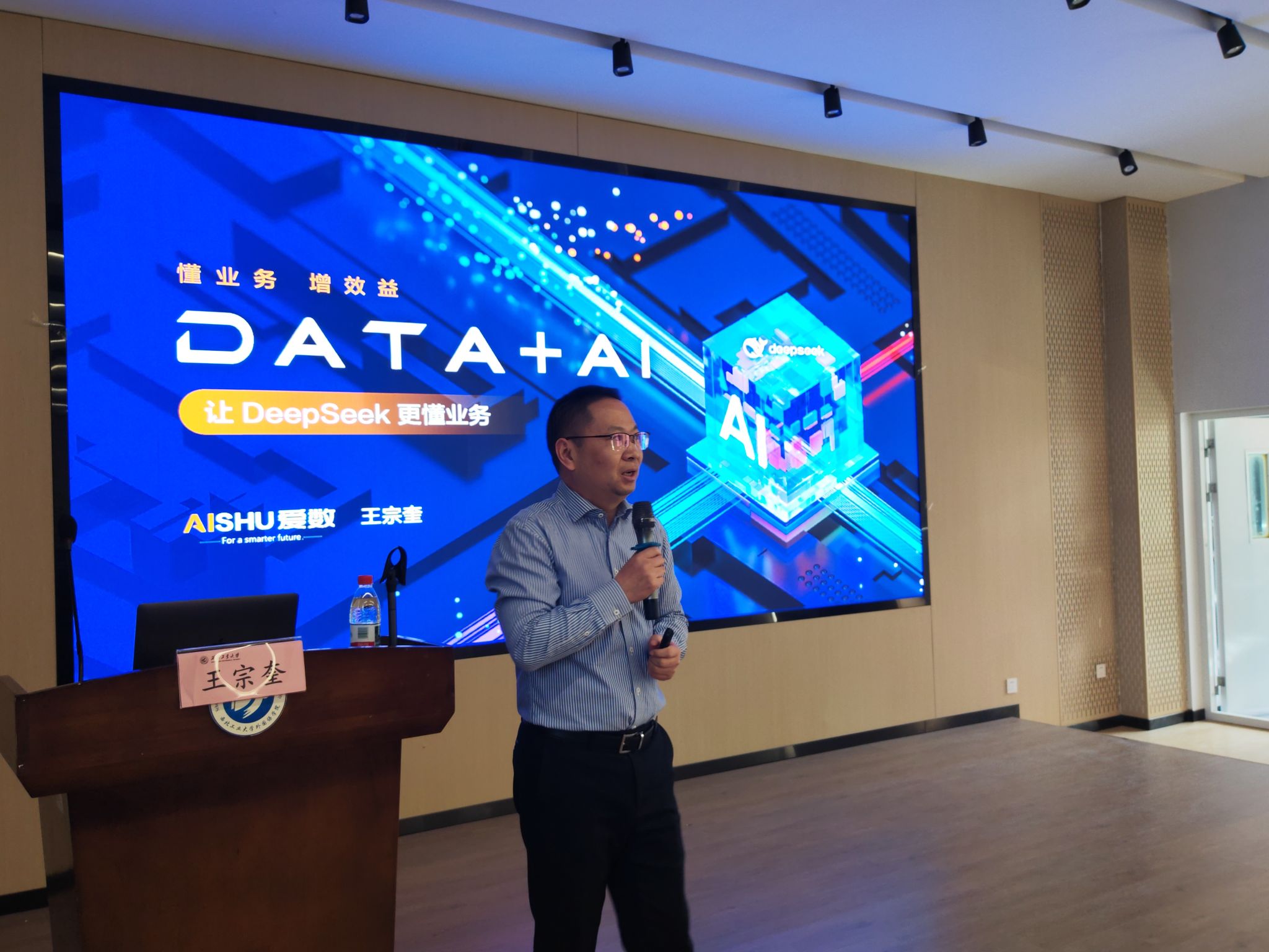 随后,同学们步入启真楼105,听取专题讲座。学院邀请上海爱数信息技术股份有限公司行业总经理王宗奎做题为《Data+AI:让DeepSeek更懂业务》的报告,报告会由acg漫画