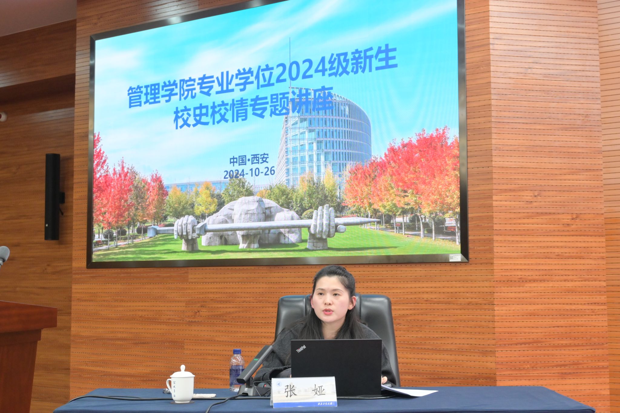在学校国际会议中心国五会议室成功举办专业学位2024级新生校史校情专题讲座。全体MBA、MEM、EMBA、MPAcc新生通过线下或者线上方式参加了此次讲座。