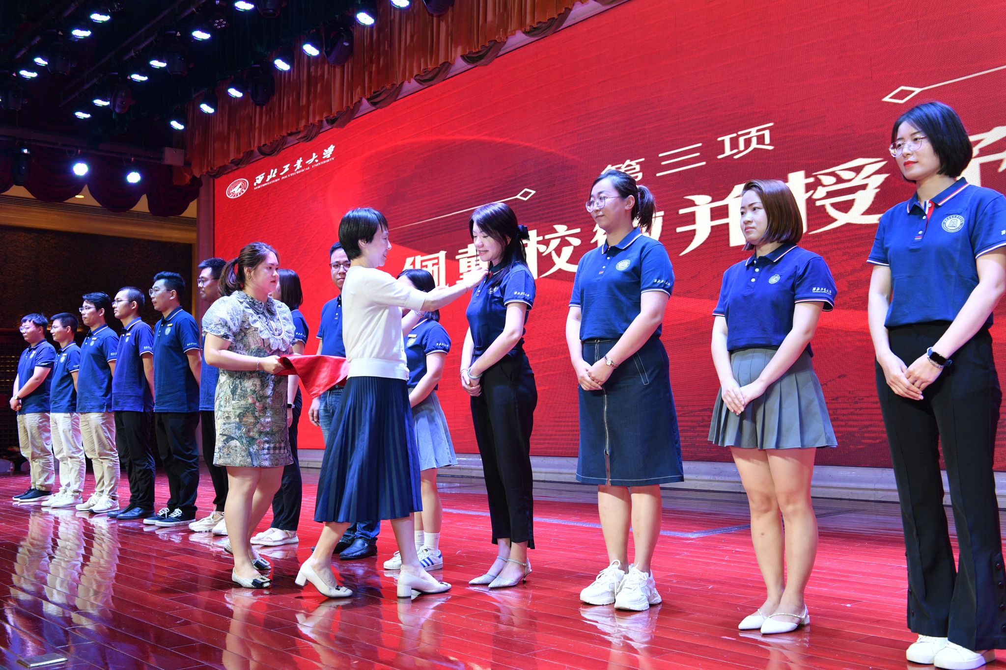 典礼上,党委书记乔彩燕为新生代表佩戴acg漫画