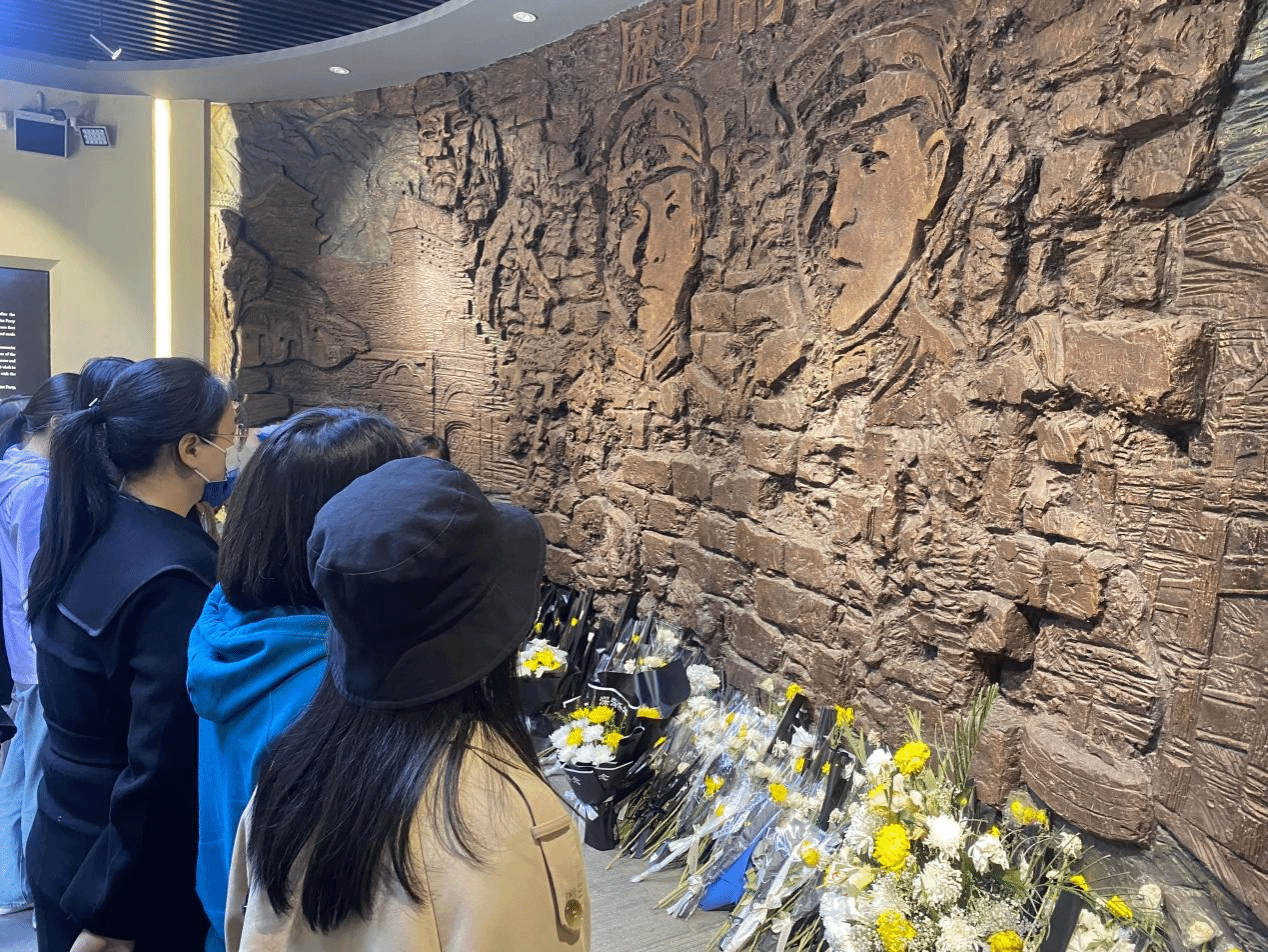 全体师生先肃立奏唱国歌,之后在陵园纪念碑前低头默哀,为在斗争中英勇牺牲的革命烈士表达崇高的敬意,并依次为先烈献上鲜花以表哀思。最后,大家跟随讲解员走进纪念馆,聆听英雄事迹,缅怀先烈英魂。