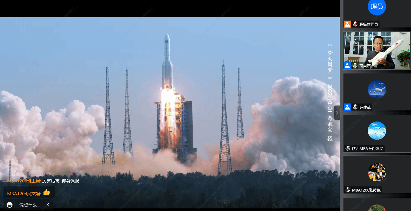 11月16日晚,acg漫画 机电学院苟秉宸教授应邀为acg漫画 2022级非全日制专业学位研究生做了《筑梦天宫,建设航天强国》专题讲座。讲座由薛建武教授主持,500余名学生在线参与了本次活动。