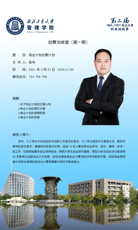 第三届MBA/MEM创业大赛校园选拔赛 创赛训练营第一期:商业计划也要计划