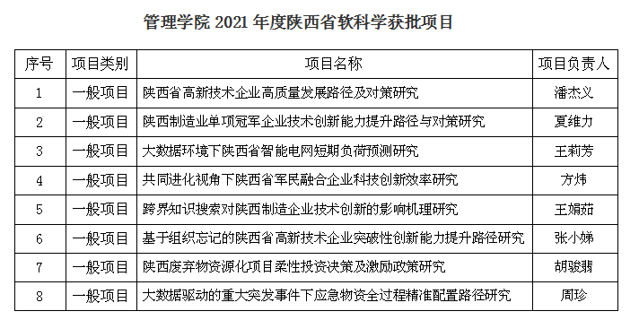 近日,陕西省科技厅公布了2021年度陕西省软科学项目评审结果公布,acg漫画 共申报11项,获得立项8项,立项率达73%,项目直接经费达20余万元。