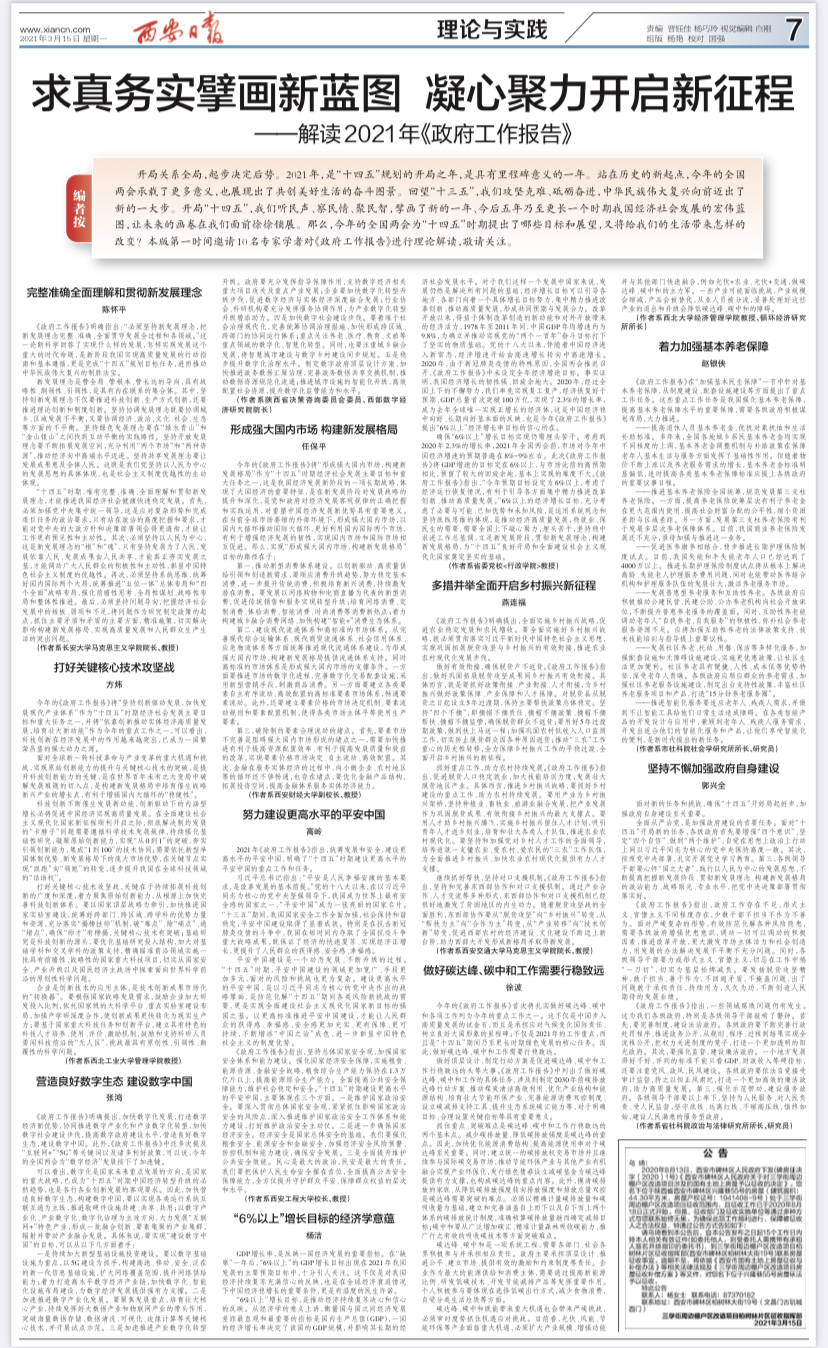 3月15日,《西安日报》第7版理论与实践“解读2021年《政府工作报告》专栏”刊发了acg漫画