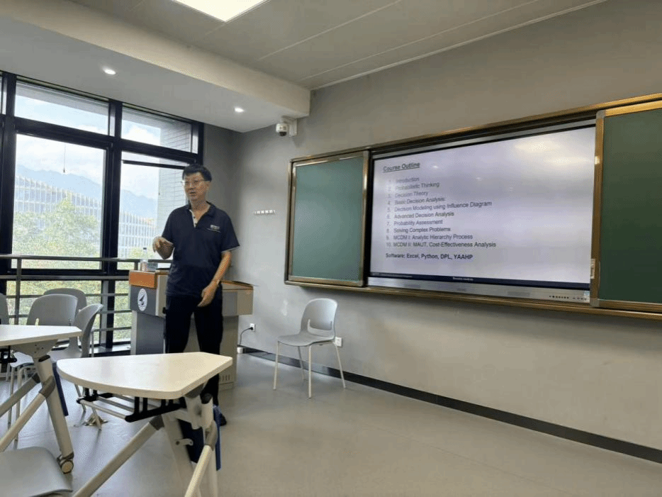 6月23日-7月3日,新加坡国立大学Poh Kim Leng教授开设了《决策分析》课程,内容包含决策树、影响图、效用函数、风险偏好建模、效用函数、层次分析法等核心要点,该课程系统涵盖了决策分析核心理论与实践方法,构建了从基础模型到复杂决策的完整知识体系。通过引入DPL工具,覆盖决策模型构建及效用函数应用,打通了理论到实操的转化路径,助力同学们掌握科学决策方法,提升复杂情境下的决策能力,为解决实际问题筑牢知识基础。
